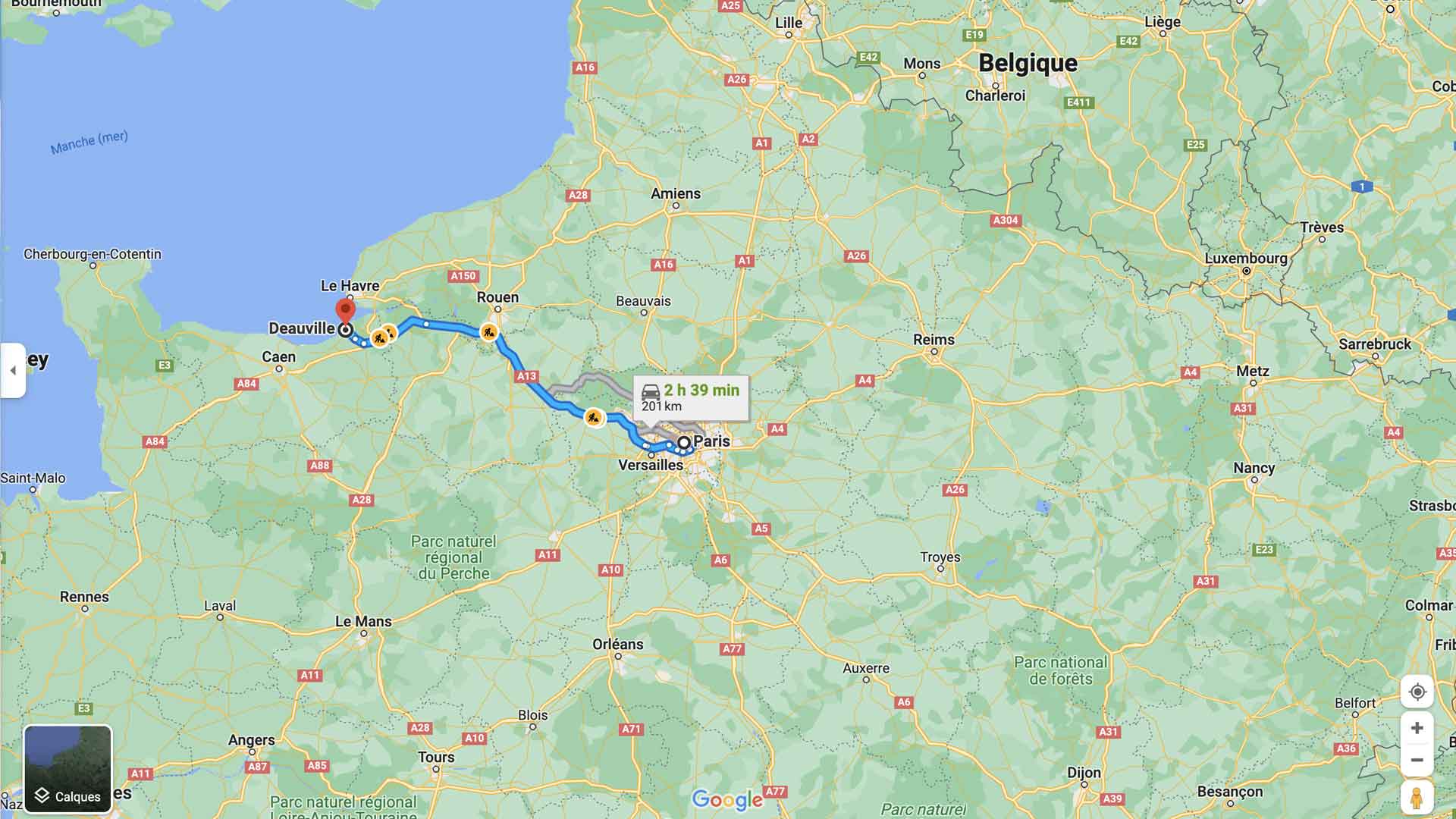 temps trajet Paris Deauville