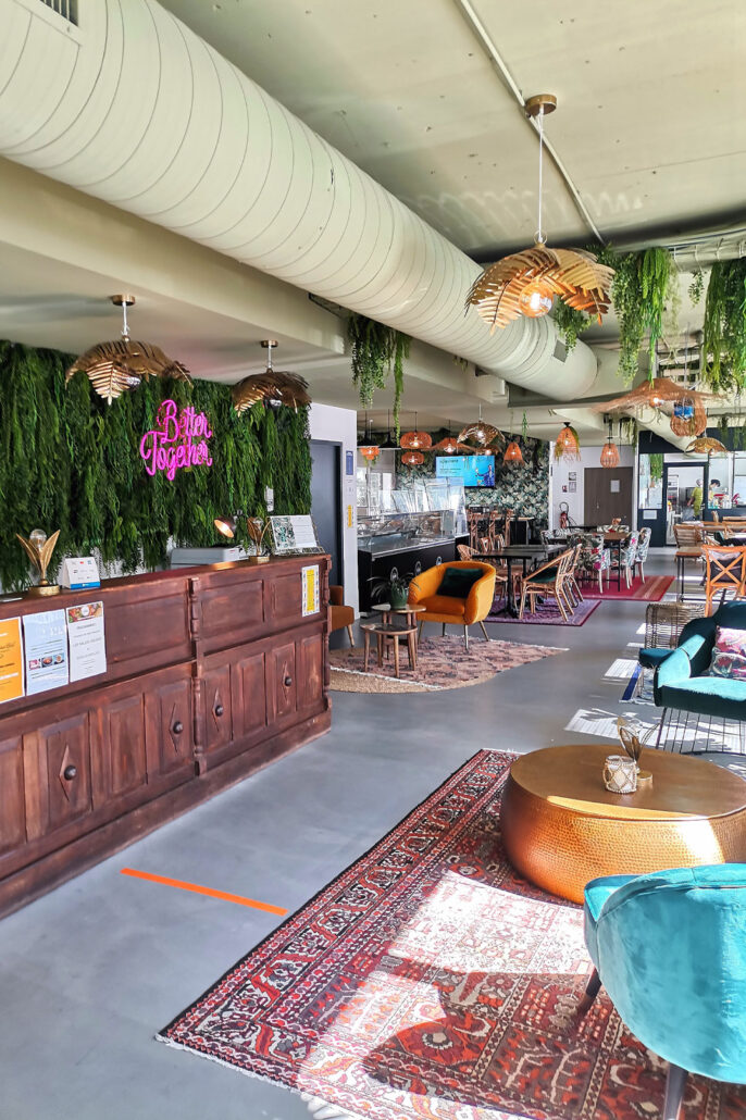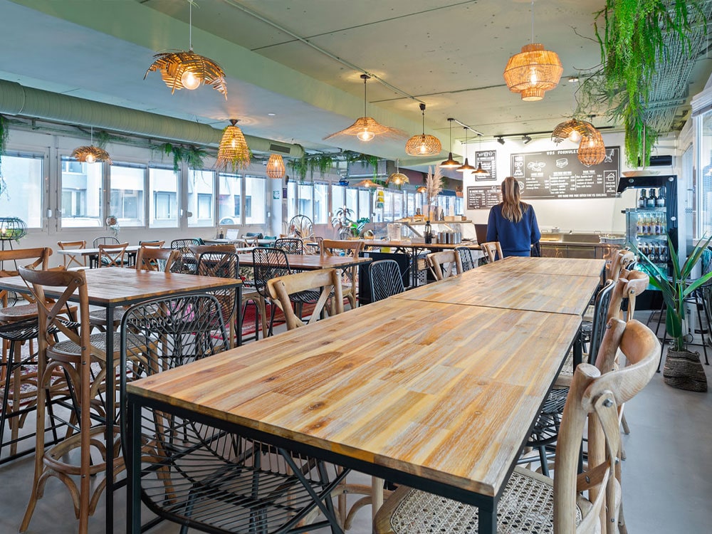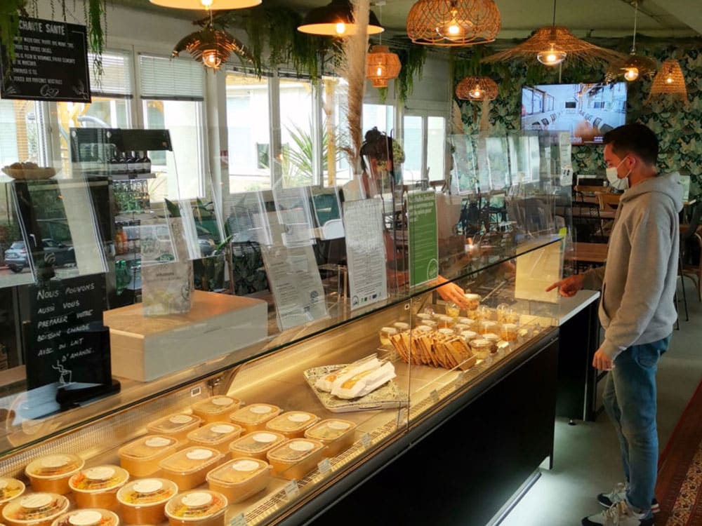 À la carte : entrées, plats chauds, salades, plats veggies, sandwichs, desserts et autres snacks et biscuits, faits maison ! Tous les plats proposés sont faits par de vrais cuisiniers. De plus, les recettes préparées en amont par une diététicienne, suivent une Charte Alimentation Santé établie par une micro-nutritionniste.
